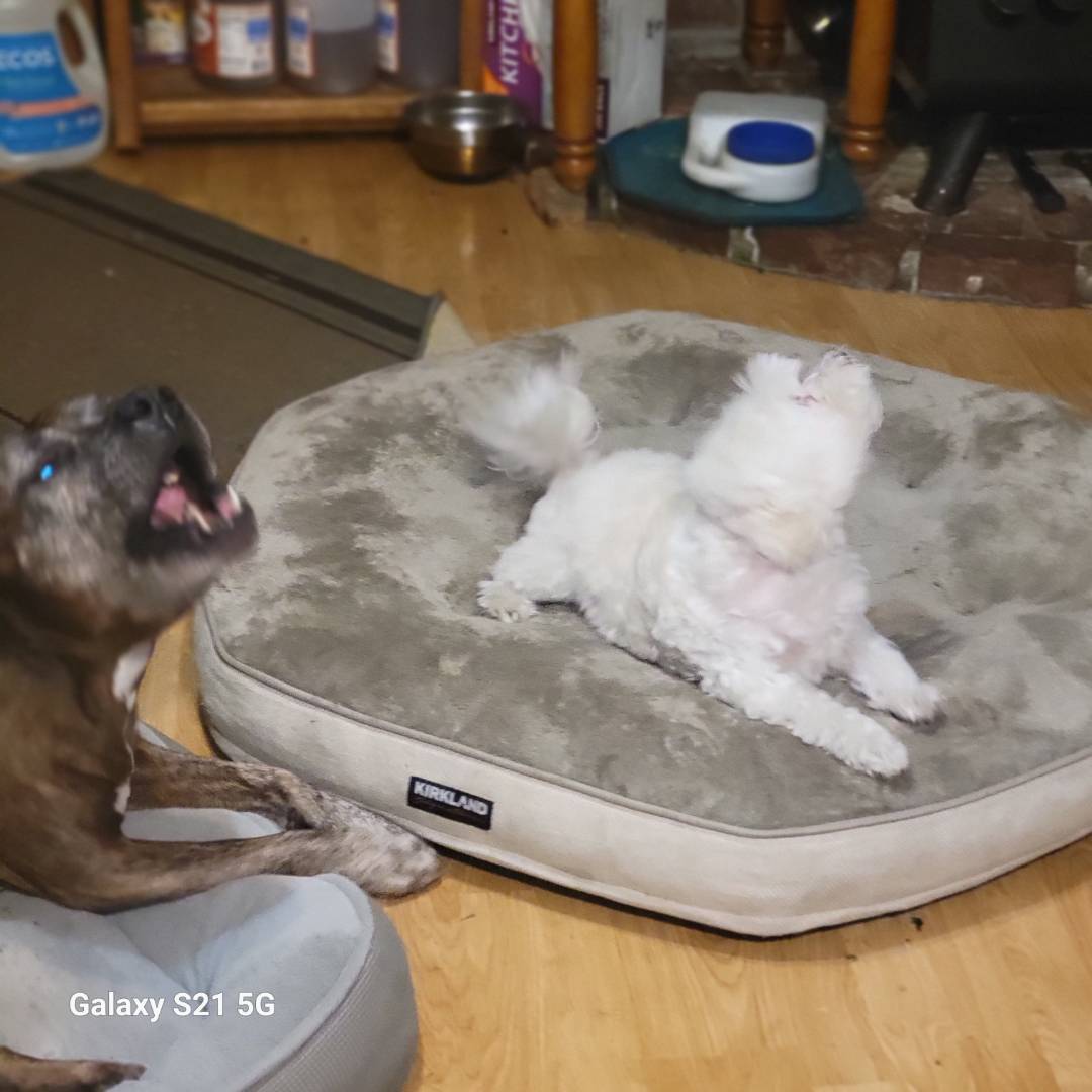 That must be my dog cousin I bet she’ll beat him I got the greediest dog I ever seen in my life.