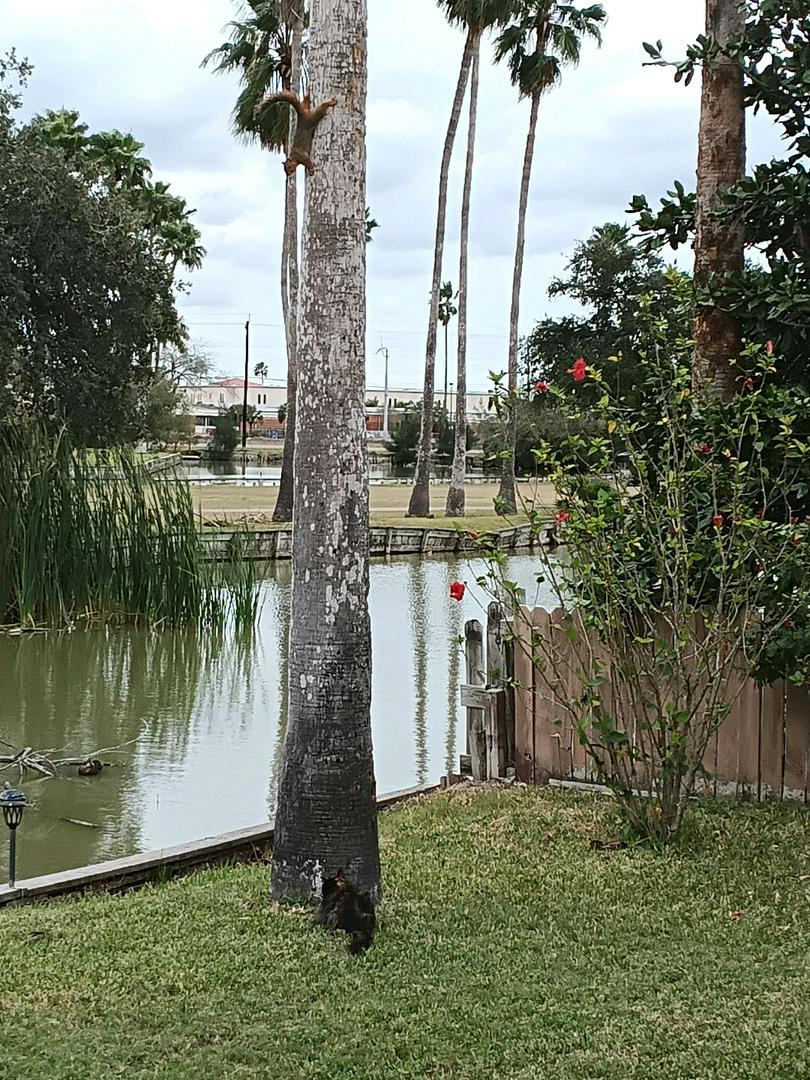 And I thought my squirrel was having a bad day cause my kitty had him trapped halfway up the tree ๐. Neither one would call "Uncle"!