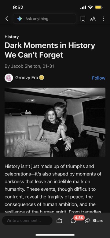 Why are all the comments from September? Are we going so far back because democrats can’t think of anything. Don’t even say Epstein if he were in it then Democrats would have used it in the Presidential race.