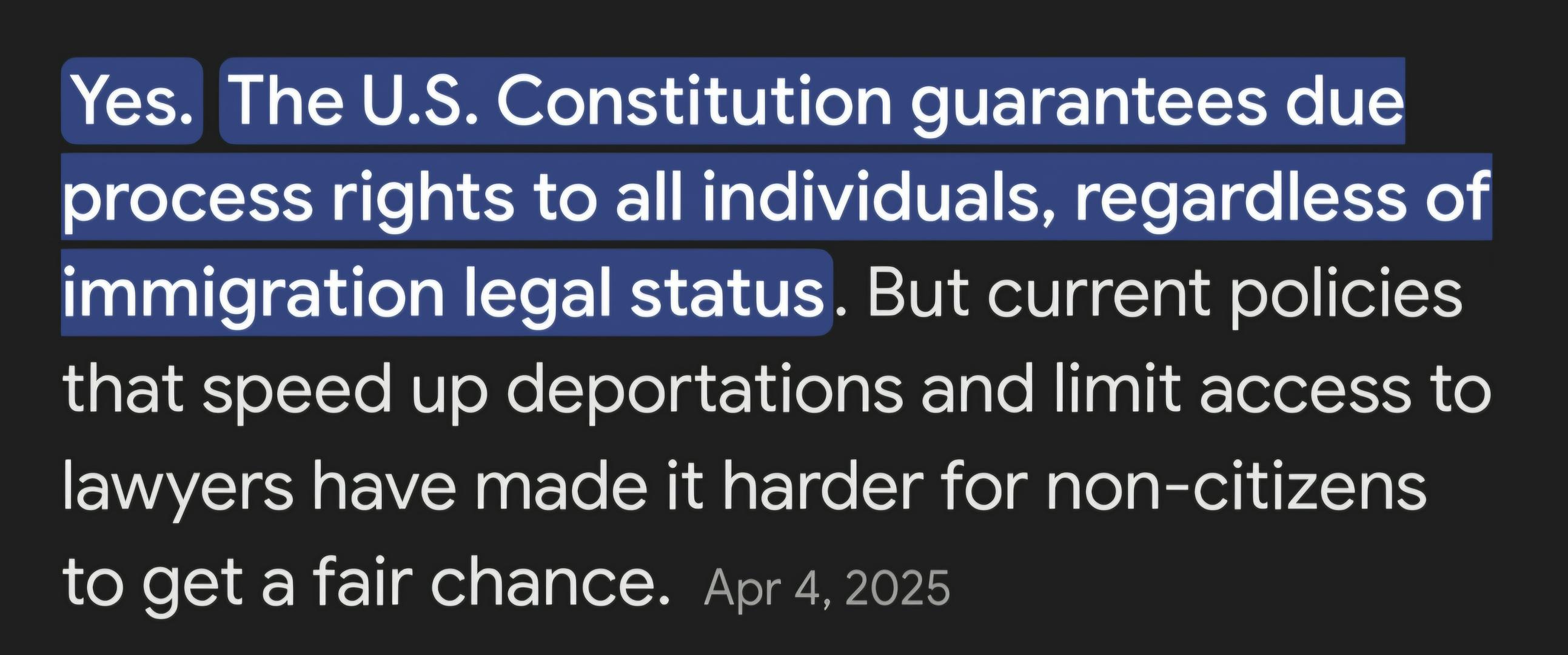 The point is and should be the fact that these people were denied their right to due process. The constitution grants that to anyone and everyone regardless of citizenship status.Don’t lose sight of the real issue.