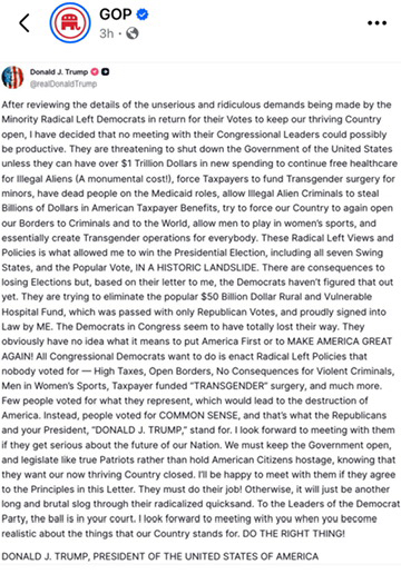 Trump brought this upon himself. Never has a POTUS been so hated. Go ahead, just fire thousands of federal workers and put them in a predicament. Stop the “SNAP”, and starve the AMERICAN PEOPLE! How ignorant can one be?!