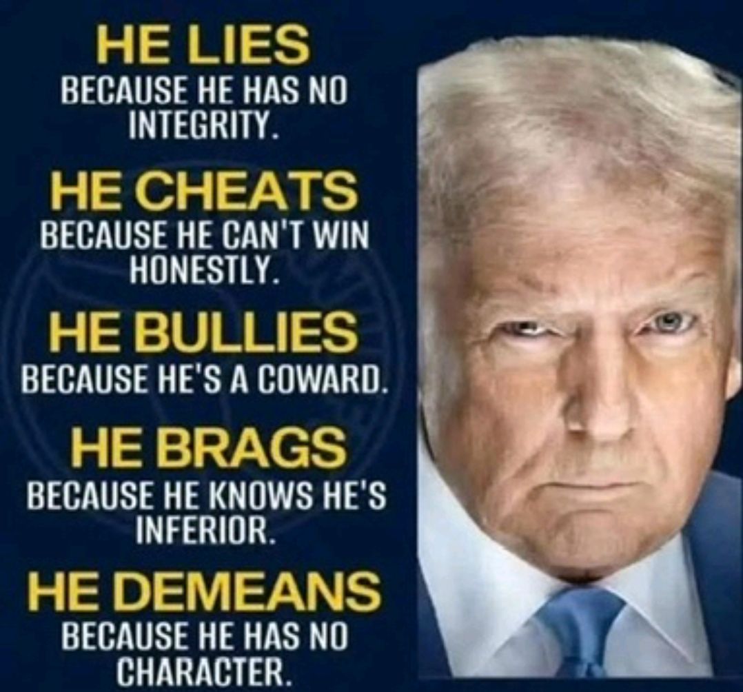 That’s OK we hate you too! With a passion like never before! How can any decent human being with any moral integrity whatsoever even like this type of person who is a manchild ,a pathological liar, a child molester ,a cheater, greedy, obese, orange, misogynistic, narcissist, and racist. I think he has every single repulsive characteristic that the worst kind of man has! But I’d like to know is there anything good about him at all? I wouldve never imagined the president would speak the way this fool talks. I am absolutely embarrassed of our country and so is the rest of the world.!! The president should be kind, mature, and represent this country in a classy, respectful manner! I miss Obama!!😭😭