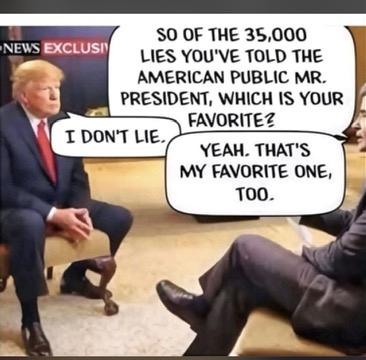 like we said, if his duck lips are moving he's telling a lie. if his little fingers are tweeting he's hating on someone who knows hes a liar. if he's making a move he's cheating. if he's at Mar A lardo he's screaming. trump is a putrid president who absolutely needs impeach and remove.
