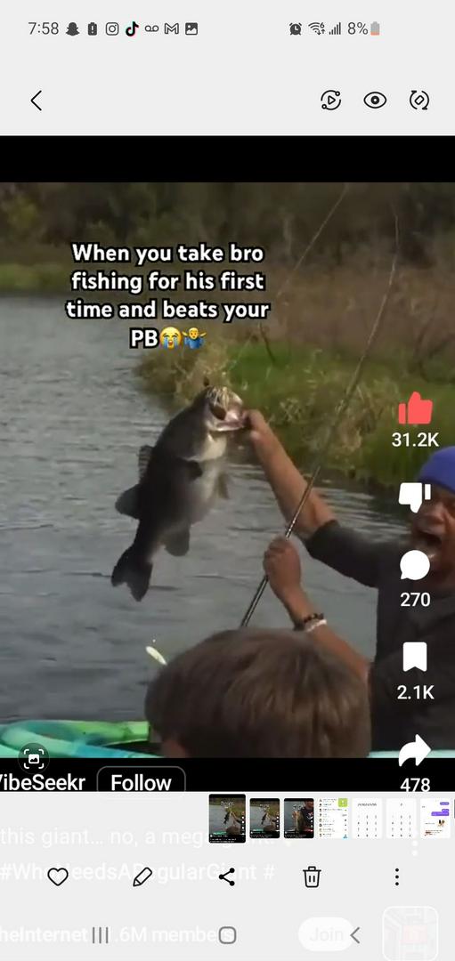 dude is TRIPPIN! you remember that kind of excitement. good for him! shit, hands down beats my best catch when it comes to bass!