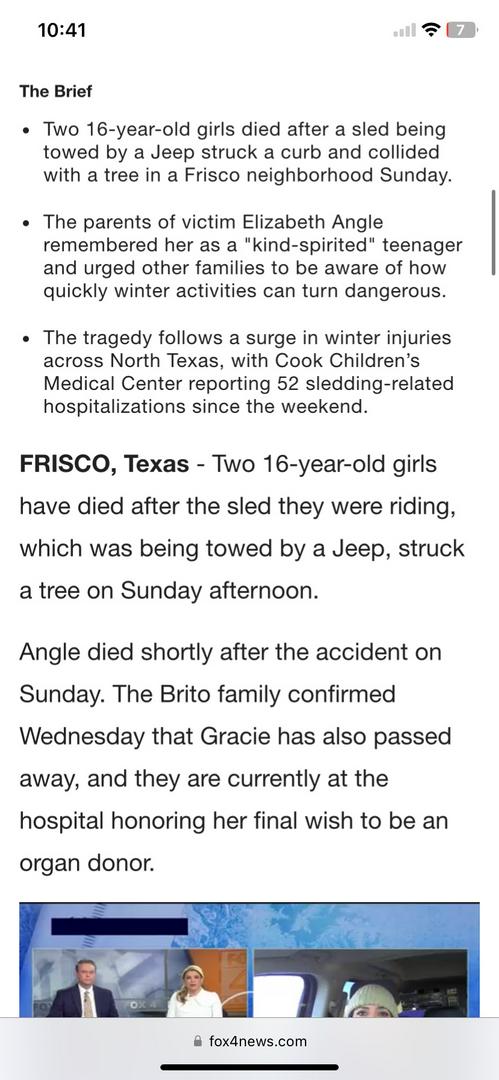 Here in Texas during the ice/snow storm 2 girls were being pulled behind a Jeep the sled they were on hit a curb and sent them into a tree one of the girls died at the hospital the same day (Sunday 1/25/2026) and sadly the other girl just passed away today (Wednesday 1/28/2026)it sounds and looks so fun but also SOOOOO DANGEROUS!!!!!!