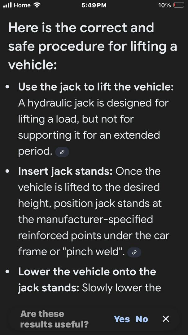 so in this guys head if your going to lift a car completely off the ground you need 4 Jack's and 4 stands😂