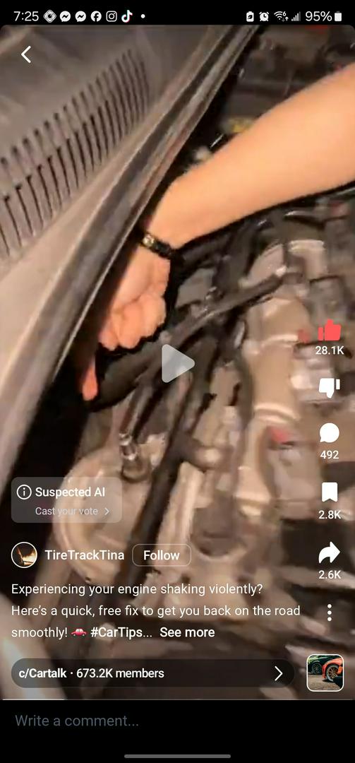 Wrong this is totally fake. I’m a full-time mechanic. I like that is either a misfire, spark plug . O2 sensor for oxygen it would not make the car shake shake shake.