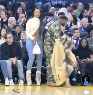 Walking like the boots hurt her feet or scared to walk, just wear some comfortable shoes or sneakers, damm u at a NBA game