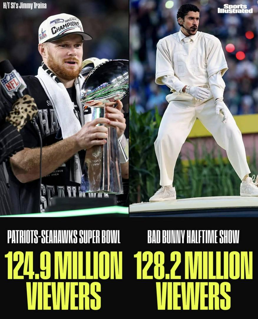 Bad Bunny, doesn't stand for the anthem, and sings and grinds perversion in front of the American people.....he laughs at our country...bad Bunny sucks