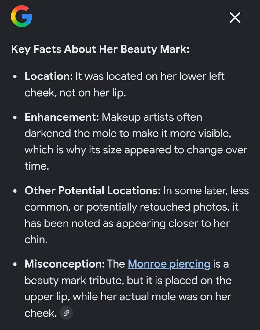 It was always on her lip! You people are crazy! You know how I know I have a mole above my lip that I have always called my Marilyn.