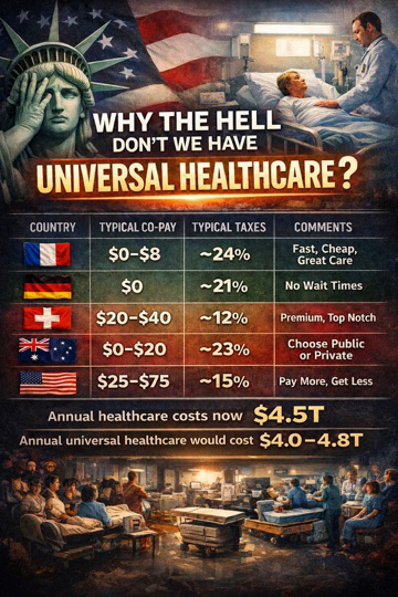 Also need to reduce the prices of healthcare. Like Hospitals, specialists,and diagnostic test like MRI’s, CT’s and bloodwork are through the roof