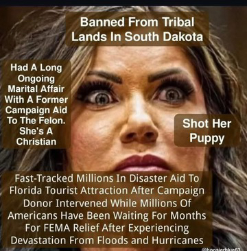 Cruella Noem. well known for executing a puppy instead of looking for a good home for that poor dog. What kinda kind of a person would do that heinous act???