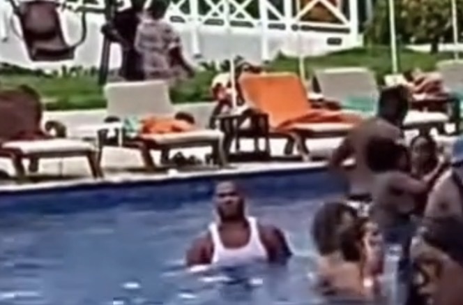She caught his ass looking cross that pool and then he got mad😳