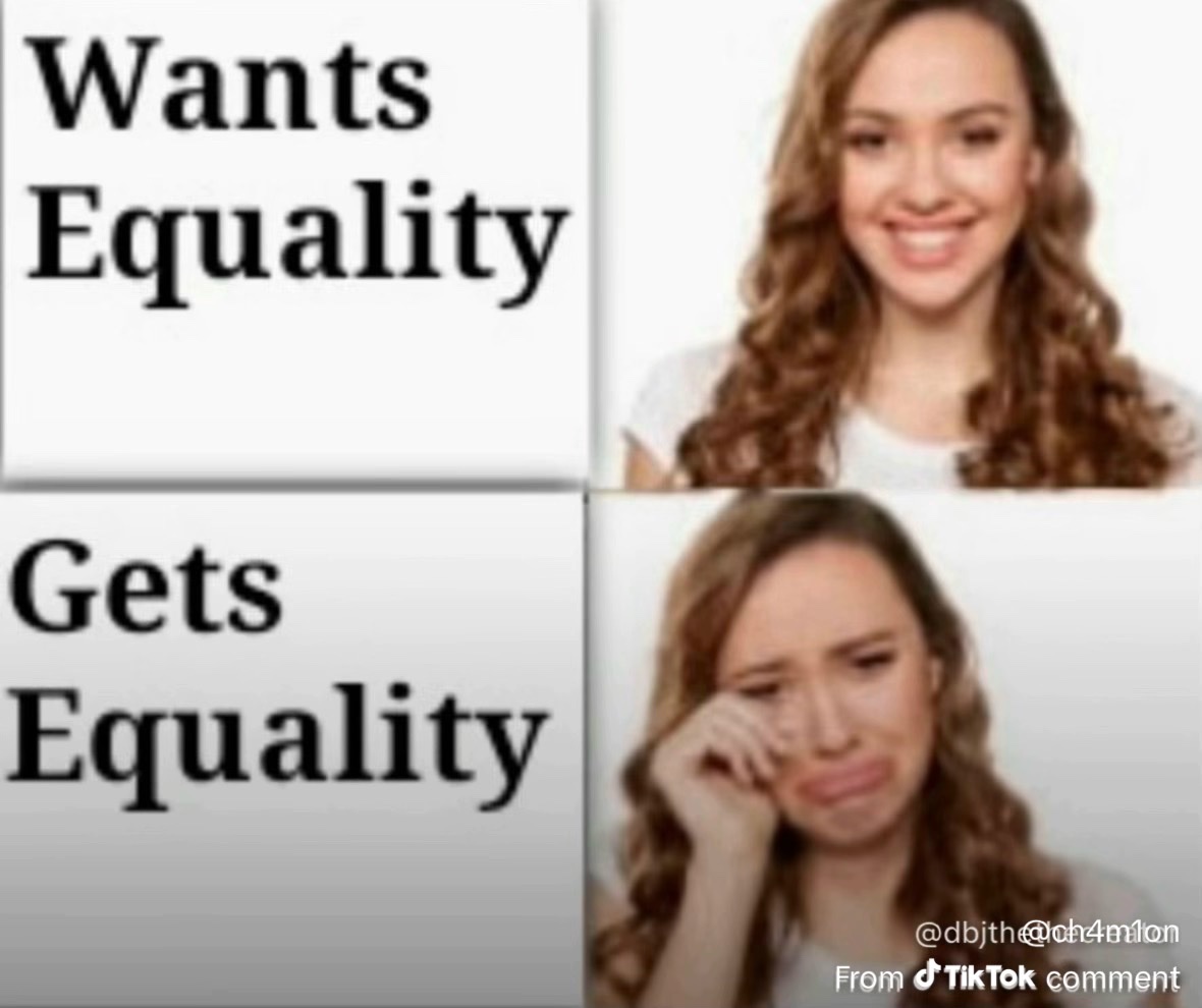 equal rights equal fights sweetheart 😭😂 if I hit a man I expect him to hit me back tf