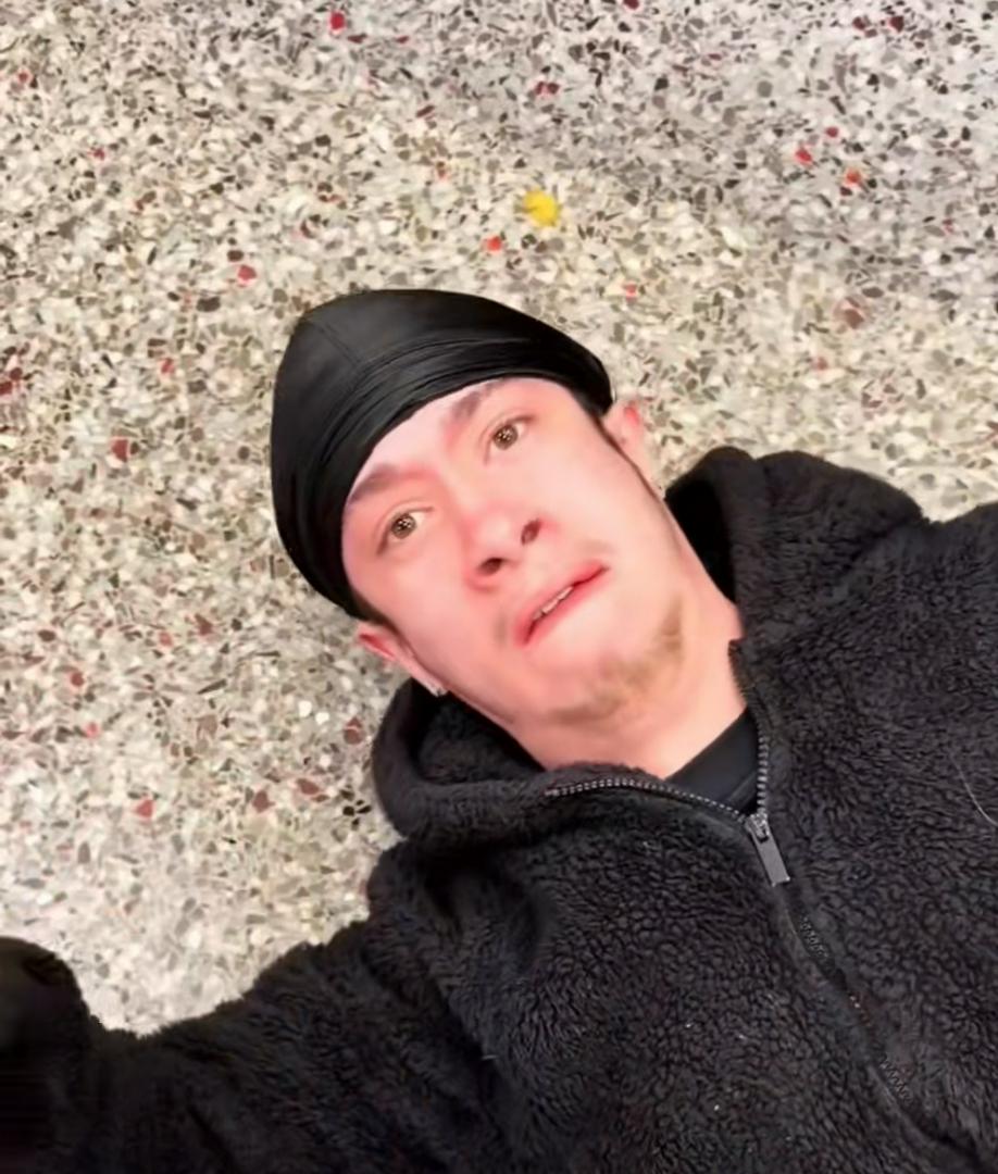 The way he tried to get up but laid back down 😭🙏