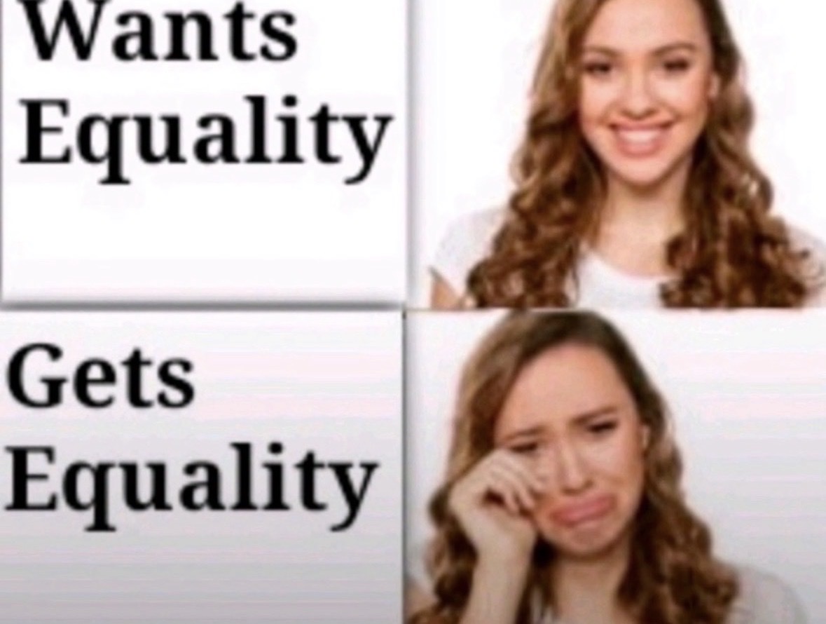 as a women , these hoes js sayin they want equality because people who say they don’t want it get hated on , as someone who wants equality, yes I’m saying like if I started anything with a man in any physical way he has all rights to do something physical back, but I just wanted u to know not ALL girls are like this !!