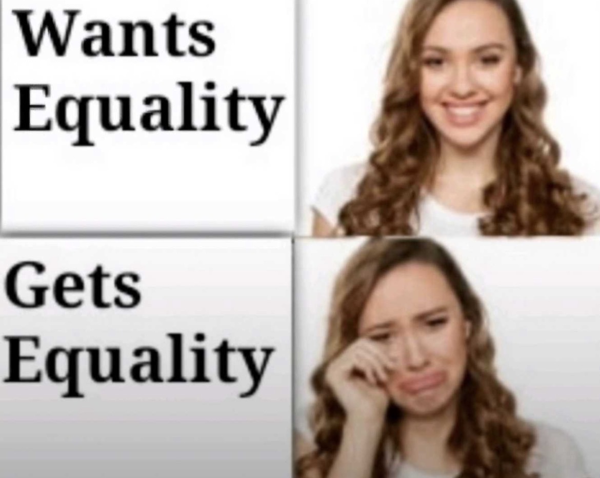 Oh NOW she wantsa be a female when its convenient. hell naw
