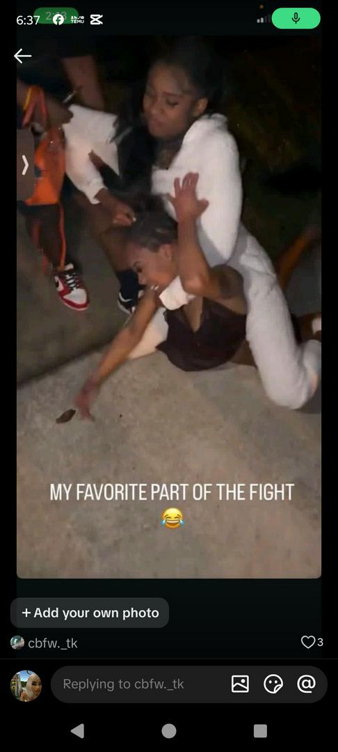 im in da black shirt & shorts i heard she was tammat me den she wanted ta fight my fren dat don’t fight so i took da fade