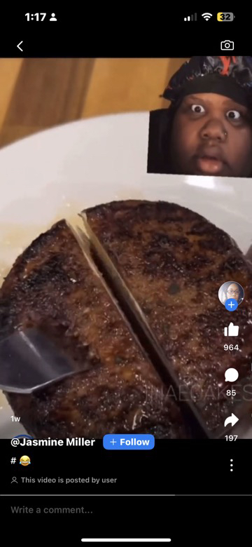 look at her face she is amazed at how that food is tender and ready to be devoured but she can't get none and you see the disappointment 😞😥😂🤣