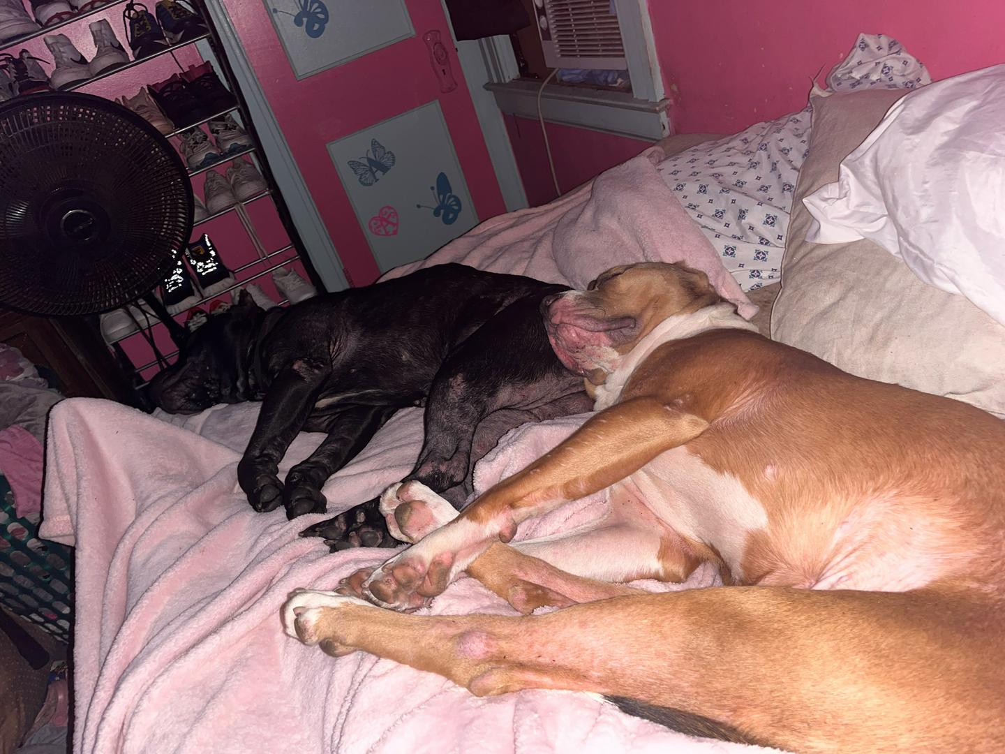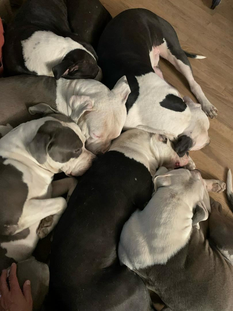Best pups ever! So loyal and loving. They have beds but rather be at my feet when I get home. I saved 13 of these, 90 pounders. And I have 1 of another breed a 15 pounder. Content and happy babies. I hope this one gets a good home. ♥️