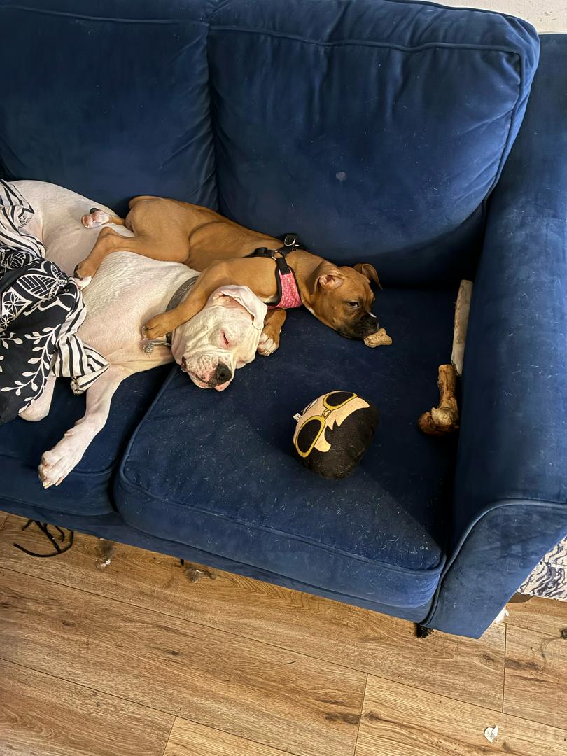 Dog in chair: “Hi big guy. Ask your mom if it’s OK for us to play.”