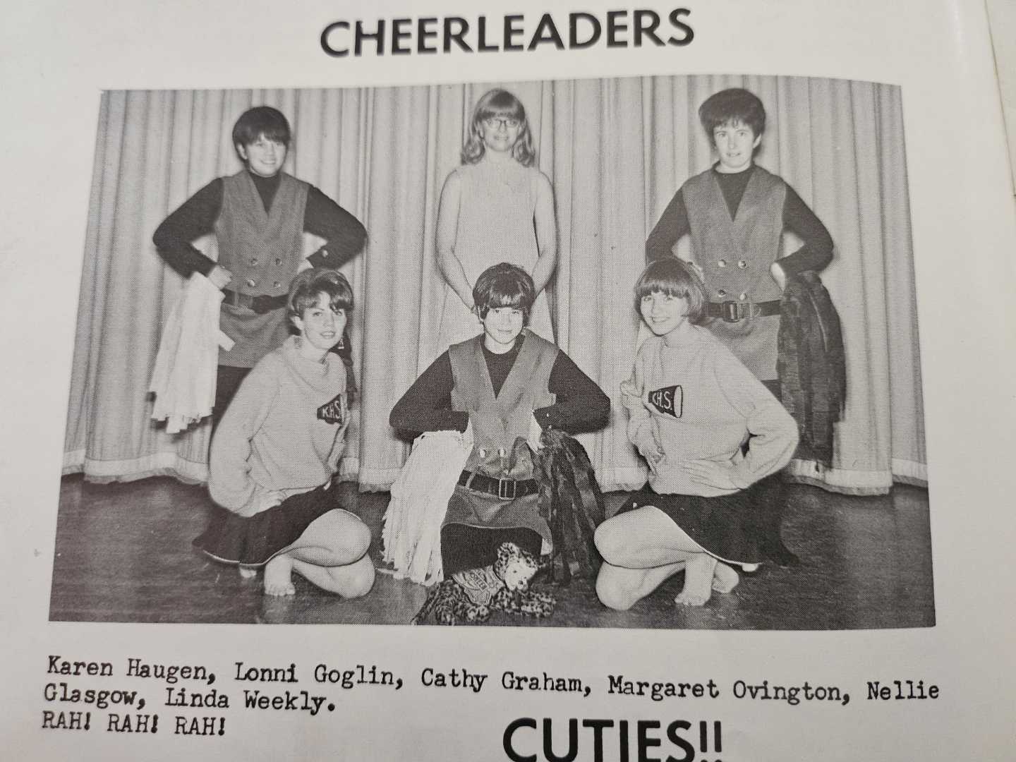 Cheerleading has sure changed since I was on the cheer squad for three years in my high school; 1967-1970!!! I'm front row, right side. It was a small high school!😁