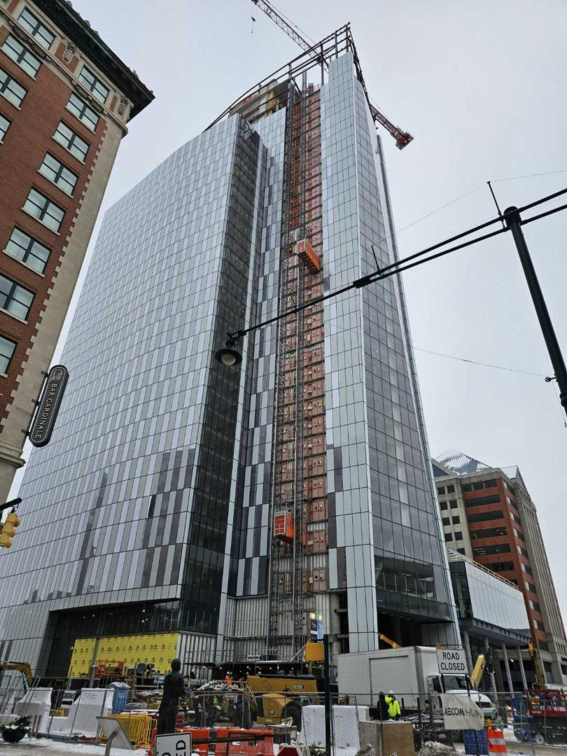 This Christmas decoration isn't even a real tree, but it still looks pretty amazing! 🔥✨ Exploring downtown Indianapolis in winter snow—gonna need a new jacket for this! #Indianapolis #WinterVibes #
