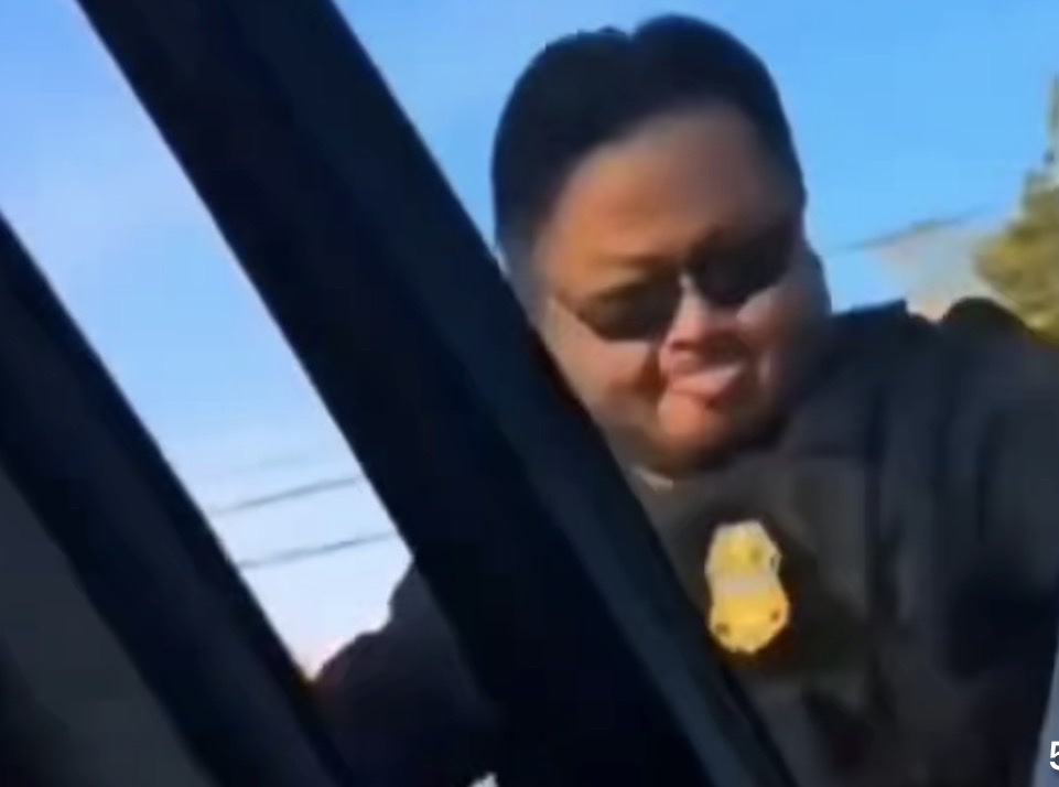 She tried to get back in the car and drive away so they detained her on the ground…they didn’t even hit her