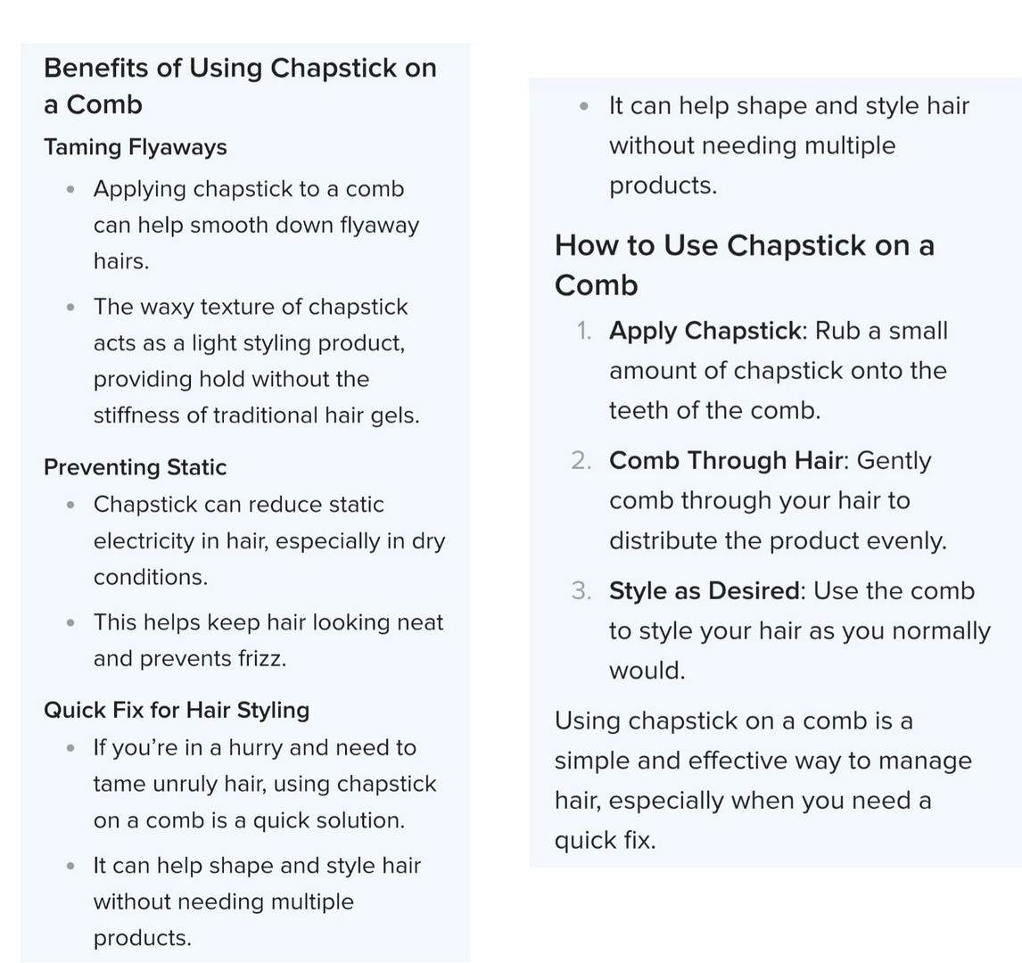 if people read the ingredients on the Chapstick you would know that if you did this trick you'd be putting petroleum jelly on your hair. That's just gross!!! 😱