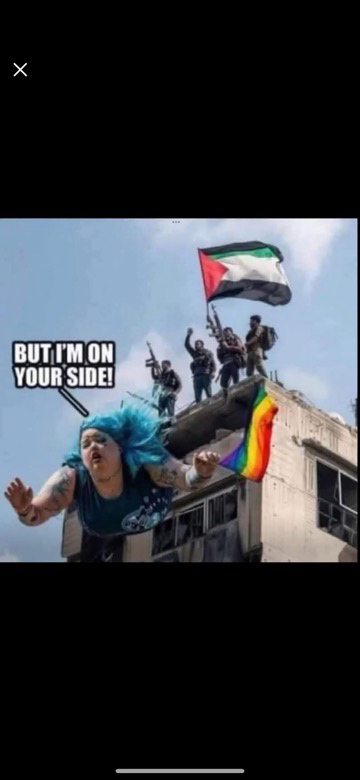 He was about to celebrate because he thought he was going to say a member of Hamas, but he ended up saying he's a member of the trans community because secretly all Muslim men are gay.
