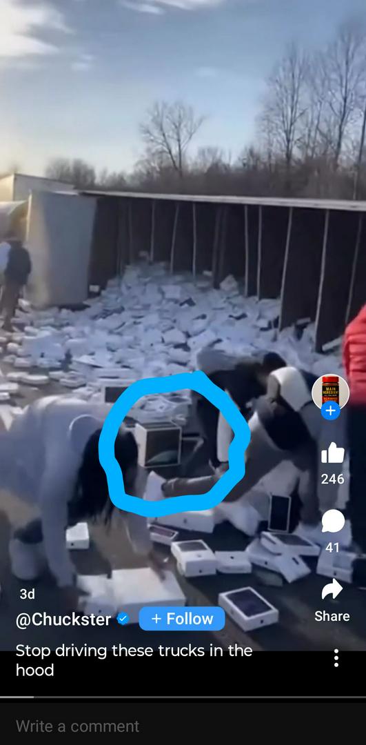 I see mostly white people but I guess it'll be said that they all *found* the merchandise on thre side of the road.