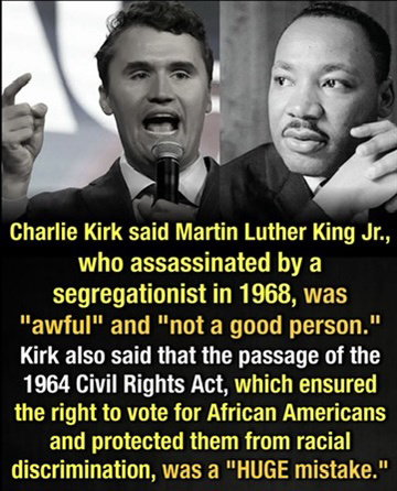 Charlie Kirk was not Racist. The LEFT is spreading this garbage. because They Are. Charlie believed in the American dream, Family, Home, and Love. He told it like it is. God made Two sexes Male and Female. He believed in Life, Not abortion.