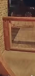 This is a cropped version of an earlier one. The earlier one showed a kitten or small cat come around the corner by the gate she opens and goes back through.