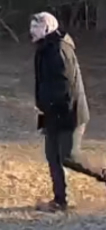 So why are so many people saying he’s wearing a mask??? Dudes just super white, and has a hood on, clearly you can see by his body language that it’s cold. He’s looking for a dog or a kid.. named Layah… or Leah… depending on what state he is in 😂😂