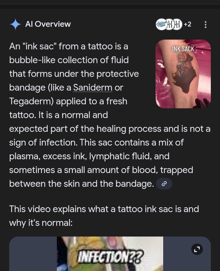 The liquid from a fresh tattoo is a normal mix of plasma, lymph, and excess ink, often clear or yellowish, that oozes out as the body's natural response to the skin trauma, helping to form a protective barrier for healing. This "weeping" is part of the body's healing process and is vital for clotting and nutrient delivery. I have multiple tattoos. the reason some of you have never seen it, is because your tattoo artist doesnt use it. its simple really 😆