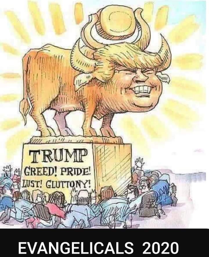 He continues to hit all seven almost daily: pride, greed, lust, envy, gluttony, sloth, and wrath. The Faux News "Christians" still love him.