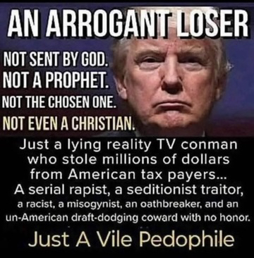 Narristic , Psychotic, Pathological Liar Misinformed kiddie diddler and gullible. Donald J.T Pepdohile