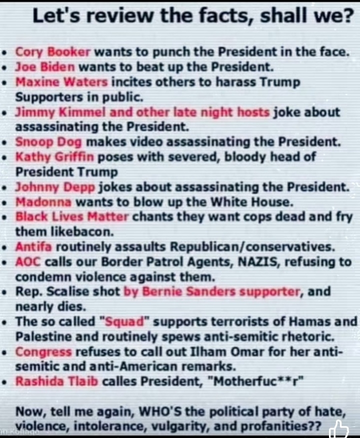 I’m an Independent and for years I saw the Democratic Party becoming more and more evil !!! They should not even be called the Democratic Party!! These evil People have threatened us and want to rip away our American values and our religious beliefs!! They want to dismantle America piece by piece till there is nothing left..They’re also brainwashing our children to hate!! That’s how I see them now. Very sad…