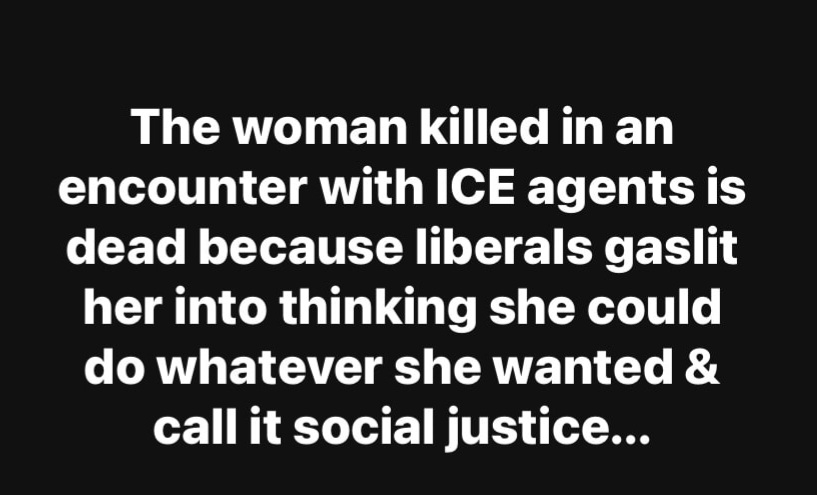 She was a socialist pig that followed those agents trying to stop their progress instead of choosing to be home safe from violence. But NO! She chose to go on a man hunt for Federal agents the entire day. She caused her own death by her actions leading up to it. SHE IS NOT 🚫 A VICTIM!