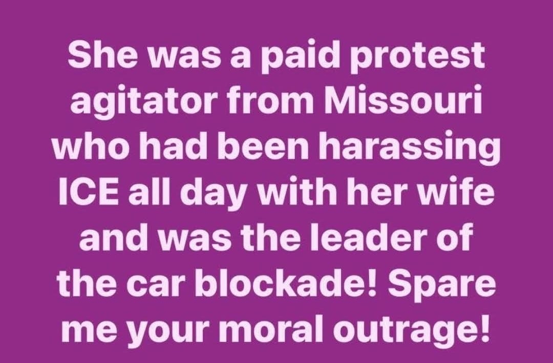 It does not matter what happened to the lady it’s sad. Yes we pray for her parents and we pray for her children, but the two women sat out created a plan and went out to insight a riot. That’s what they did. The woman filmed the other woman who was creating the problem and she was filming the problem. She lost her life. It’s unfortunate but that is what happens when you make the wrong choice in life she has three children two of them. She lost custody of because her and her life partner had a domestic dispute in Colorado. Then they came to Minneapolis with the intent to do harm to the ice agents she sent out to harm to them and she lost her life that’s what happens to people it’s all about accountability. Yeah, you do a crime you do the time unfortunately, she lost her life. FAFO.