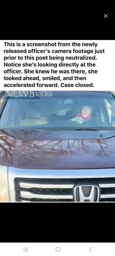 Rebecca is a main factor in her wife’s death. She personally escalated the situation that ultimately cost a life. If you are alright in which Renee went in reverse (almost hurting her wife Rebecca) the aggressively accelerating forward in the direction of another human there’s a problem. Say I was to drive like this in a parking lot while you or your child was near the front or side of my vehicle you’re telling you’d be fine with my actions. You’d say o he’s just driving his vehicle putting no one at risk of injury or death. Got it👍🏼