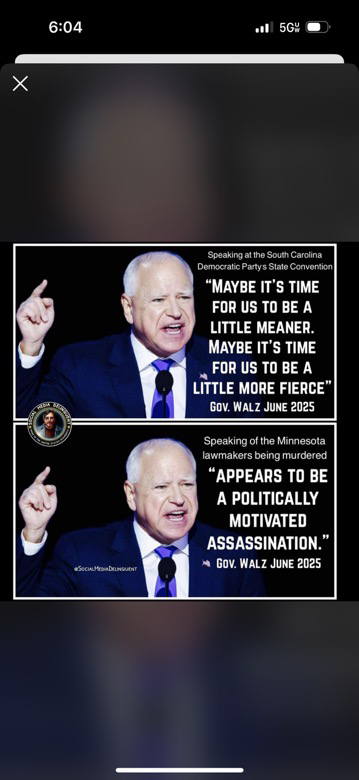 Walz is a failure as a leader. Can’t wait for his impeachment and fraud arrest.