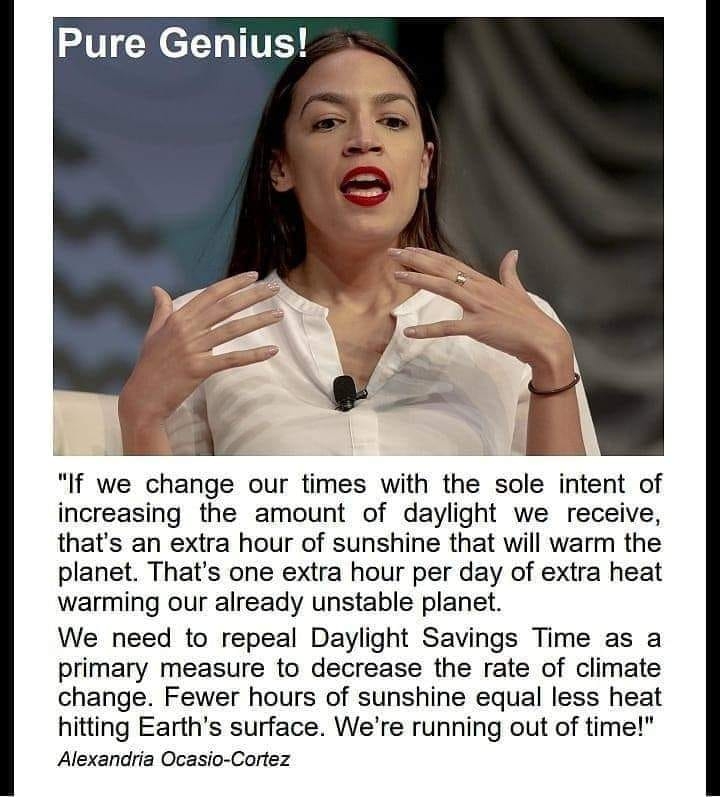 A. O. C. Stated ‘ why should we help American farmers when I can get all the food I want from my supermarket’ AND wants to send a ticket to the sun at night time so it would not melt! Pure genus !