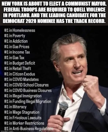 Newsom can't control his city or even state. how in the hell can he hope to help America no way in hell.