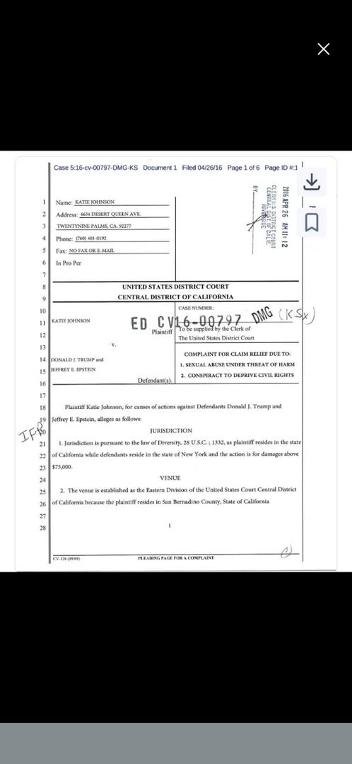 "JUSTICE FOR KATIE"... I hope people will help move this along to get justice for Katie Johnson,virgin, raped by trump at age 13. She is dead now by suicide as a young adult. She could never get over the horrific ordeal!
