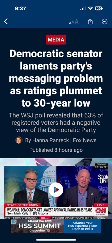 Democrat Party keeps pushing the same insanely unpopular policies that got their polls in the low to mid thridies. Democrats being so self-serving got them out of touch with legal American citizens. Always putting illegals' safety and needs over the needs of legal American citizens. There's no way democrats can legally win the mid-term.