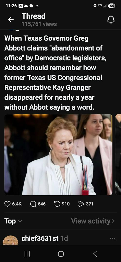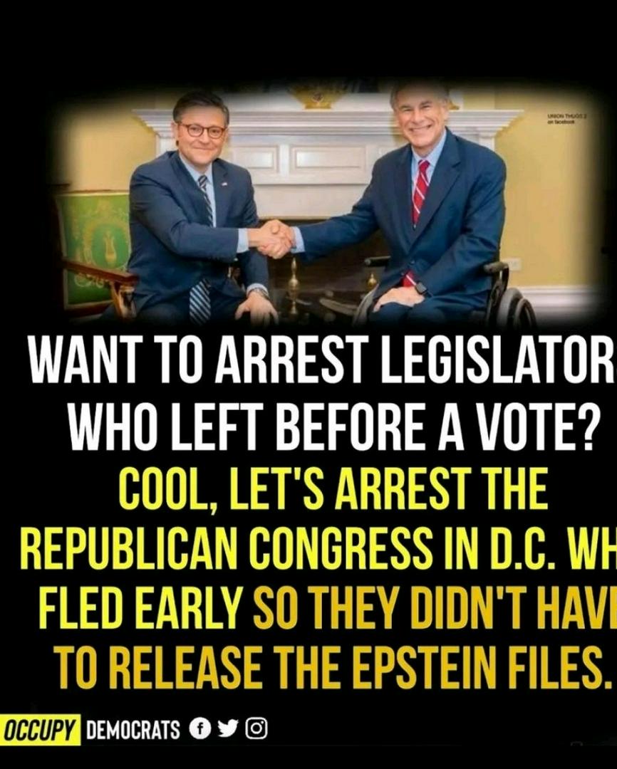 So the same action should be done to the Cowards Mike Johnson dismissed early to keep from voting on the release of the Epstein Files. As well as Paxton when he skipped town to avoid testifying in his abortion case. It's awfully funny how the MAGA crowd can do it. But you find an idiotic reason to justify. MAGA's are the epitome of hypocrisy!!!