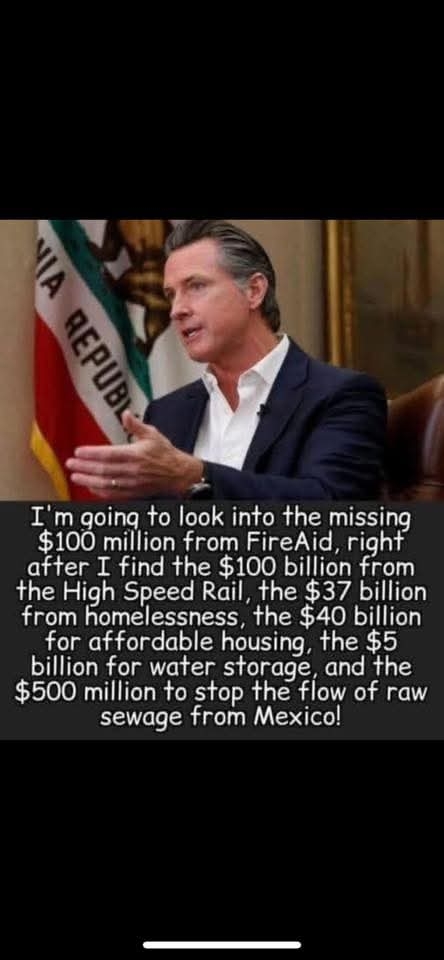 Gavin did you steal 100 million dollars for the palisades fire so your not the man I thought you were