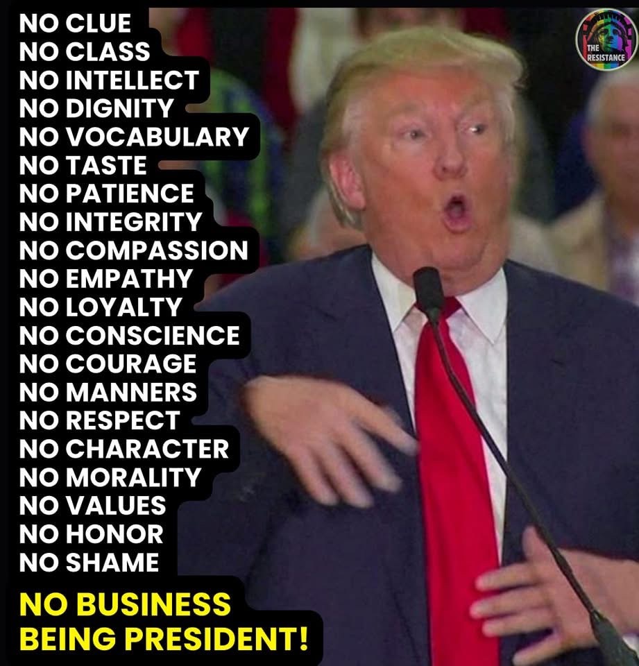 He such an fool please lock up this mental illness person he thinks everyone is afraid of him to know that people vote for this convicted criminal