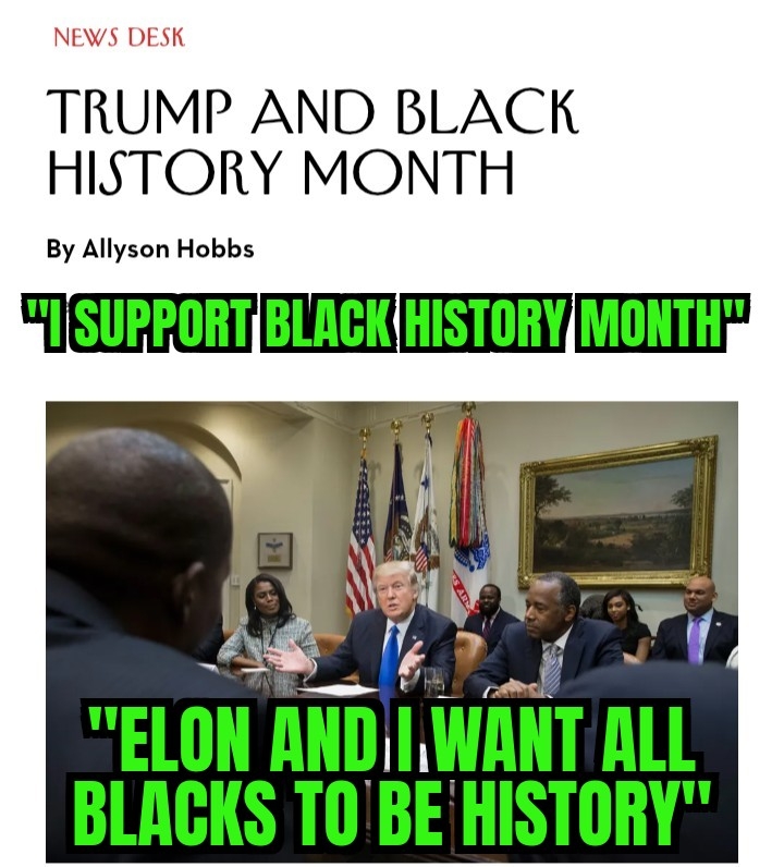 Trump ain't crap to help black community what erasing black history removing buss of mlk from white house troops in Washington and Chicago and CA HE IS SO FUS